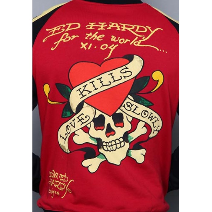 Ed Hardy Mens Jacket Love Kills Slowly Script Track Red
