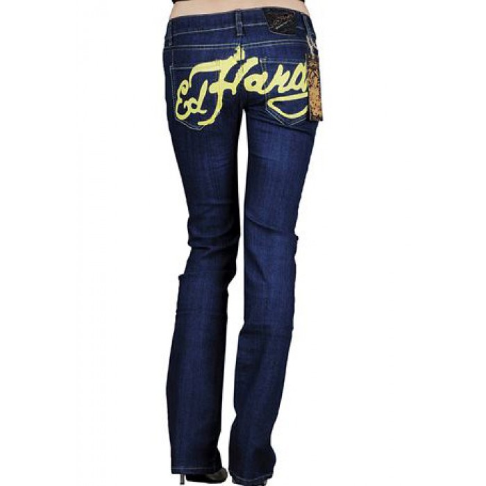 Ed Hardy Womens Jeans Washed straight cut Blue Cheap Sale